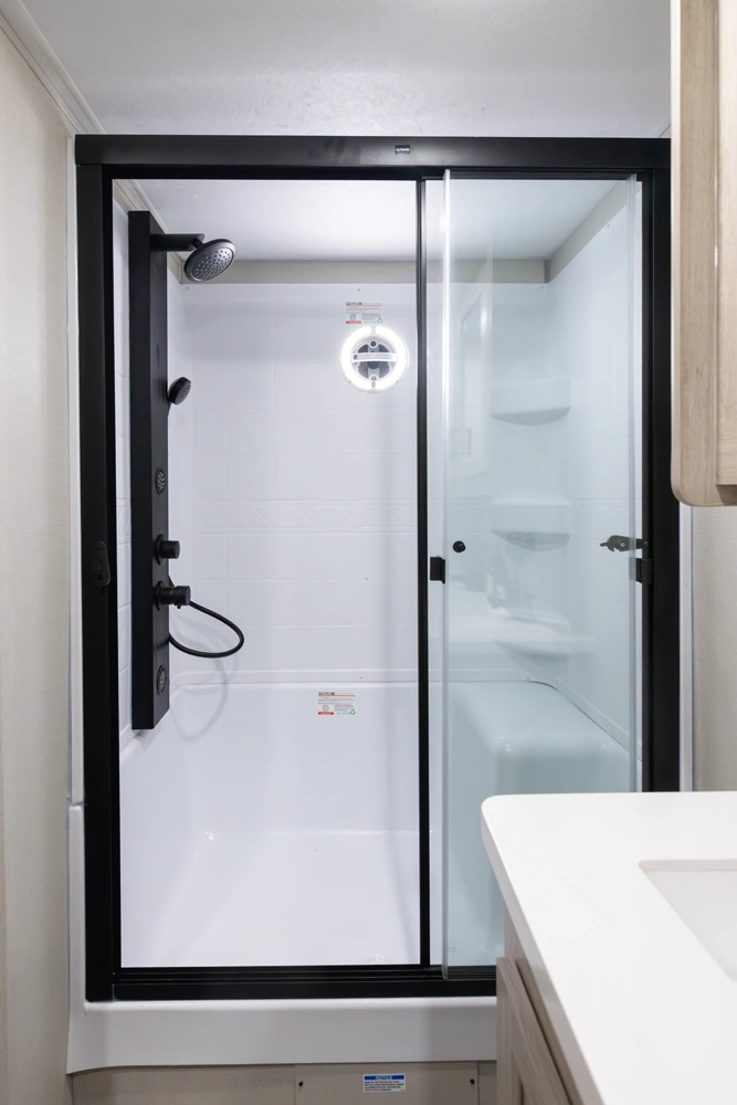 • Glass Step-In Shower w/ABS Surround