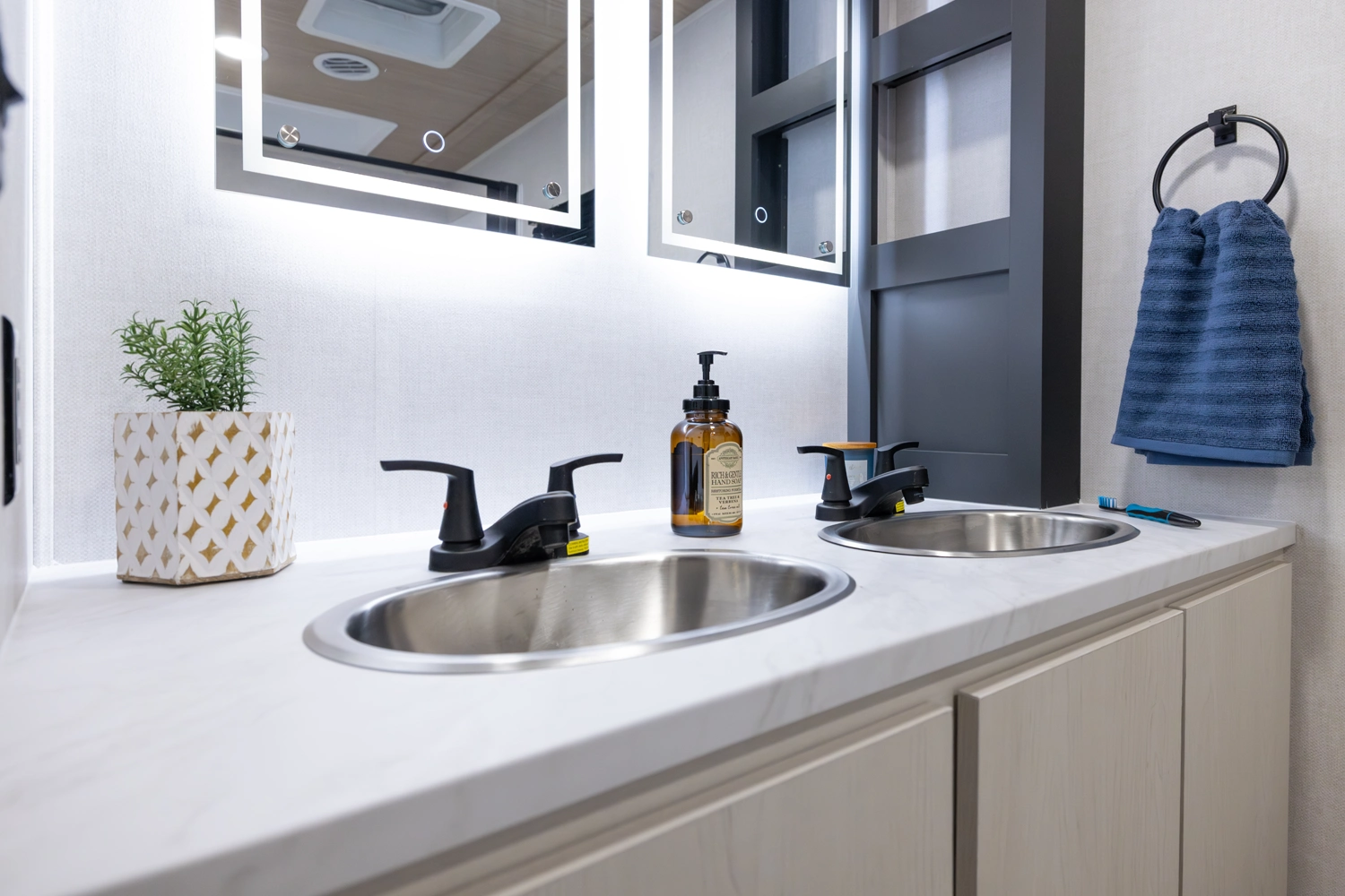 • True Flush Floor Slideouts with Fabric-Backed Shaw Linoleum